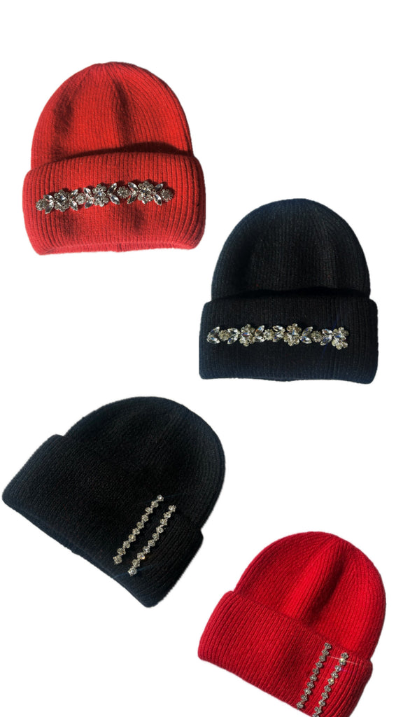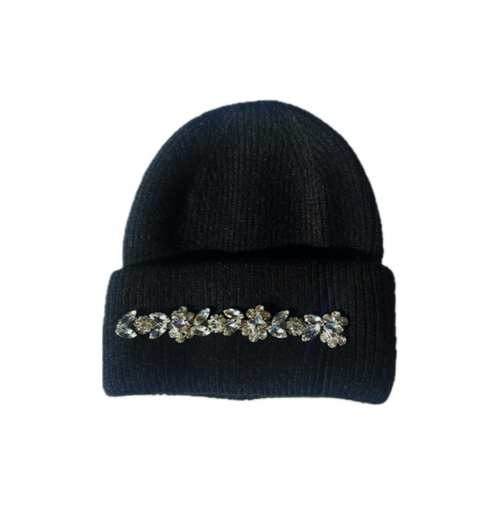 Curated with heavy mohair wool & crystal rhinestones along the brim, these Hand made luxurious beanies are the perfect accessory to any ensemble.